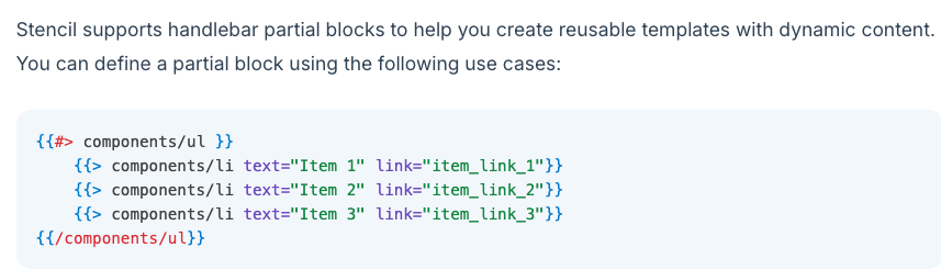 - Handlebars partial blocks for Stencil