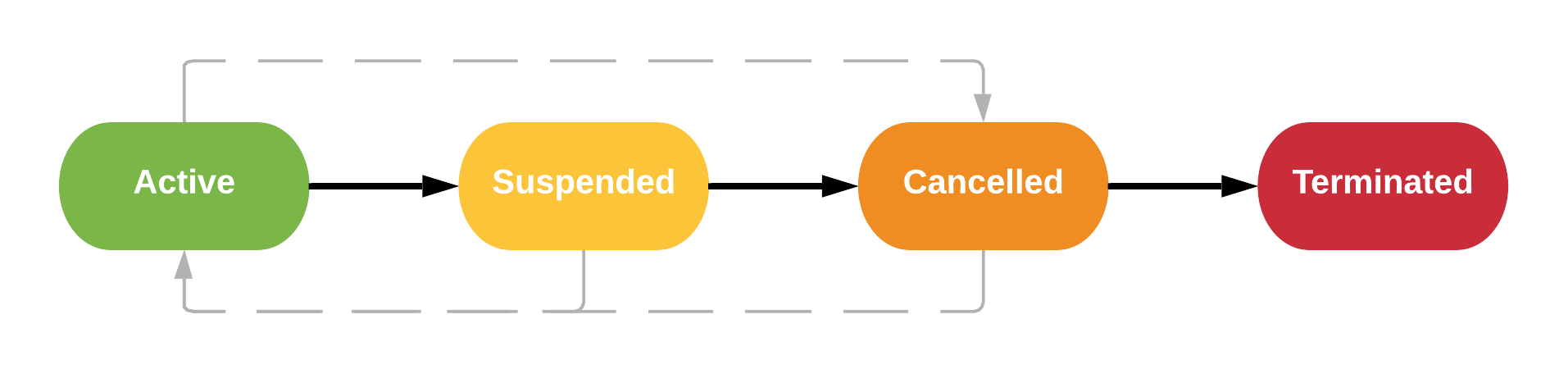 While BigCommerce supports the ability for partners to suspend and reactivate stores, we do not recommend these activities. You can reduce integration complexity by excluding these endpoints from your integration unless this workflow state is required for your solution. This also eliminates the need for you to manage store transitions from suspended to cancelled status.